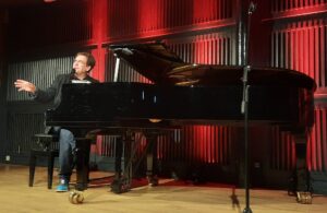 Der fröhliche Wettbewerb wurde von Friedemann Jaenicke eröffnet. Der Musiker aus Berlin gab am Flügel zunächst ein Lied über seine Katze zum Besten – und wie alle Katzenbesitzer es gut kennen, will auch seine Katze entweder rein oder raus oder rein…