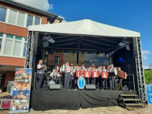 Bereits zum Auftakt um 15 Uhr waren die Bänke gut gefüllt und die Acoustic-Coverband „Höhlenrabauken“ stimmte die Besucher mit vielen bekannten Liedern auf das musikalische Fest ein. Natürlich durften bei dem maritimen Ambiente auch einige Seemannslieder wie der „Wellerman“ nicht fehlen.